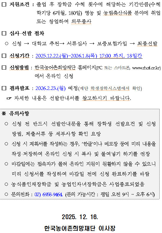2026년도 세아해암학술장학재단 제34기 세아해암 장학생 모집<2026. 1. 15.(목)~21.(수)>