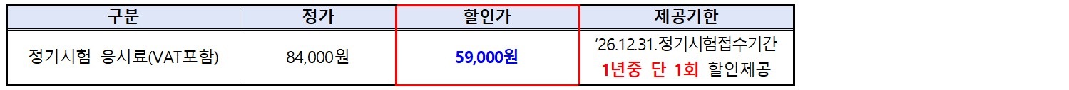 나. 제휴혜택: 정기시험 응시료 할인(적용기간내 횟수 제한없이 할인 제공)