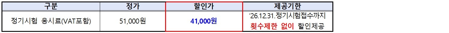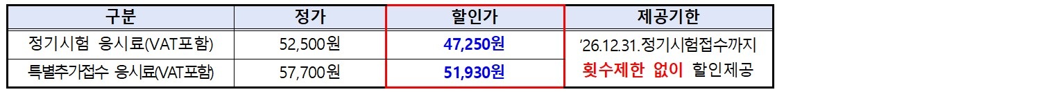 다. 혜택기간: 2026. 12. 31. 정기시험 접수까지