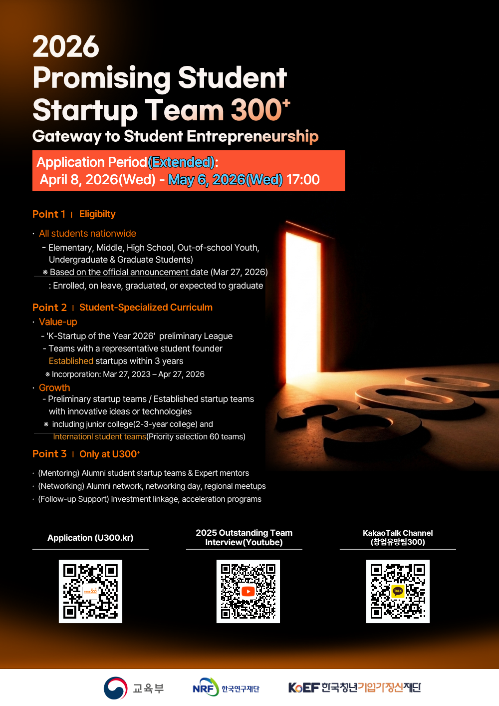 Announcement of the Revised "2026 Promising Student Startup Team 300+"