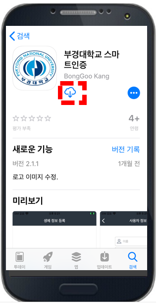 - 1. 애플 스토어에서 “부경대학교 스마트인증” 설치