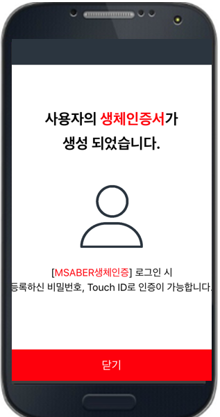 지문(생체) 인증 | 사용자 정보 생성 | 인증서 생성 |