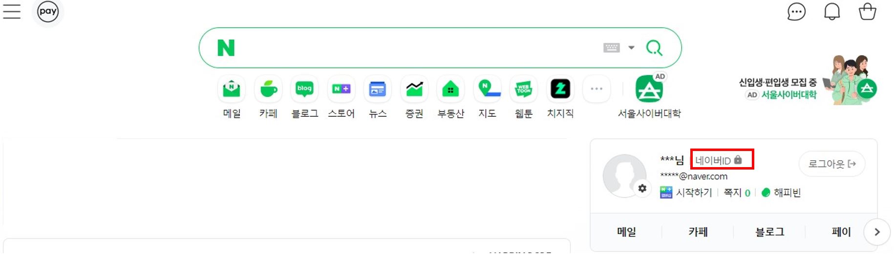 1. 네이버 로그인 후 네이버 ID 클릭 |