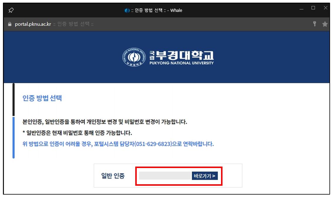 - 2. 포털시스템 계정 비밀번호 통해 일반인증 진행